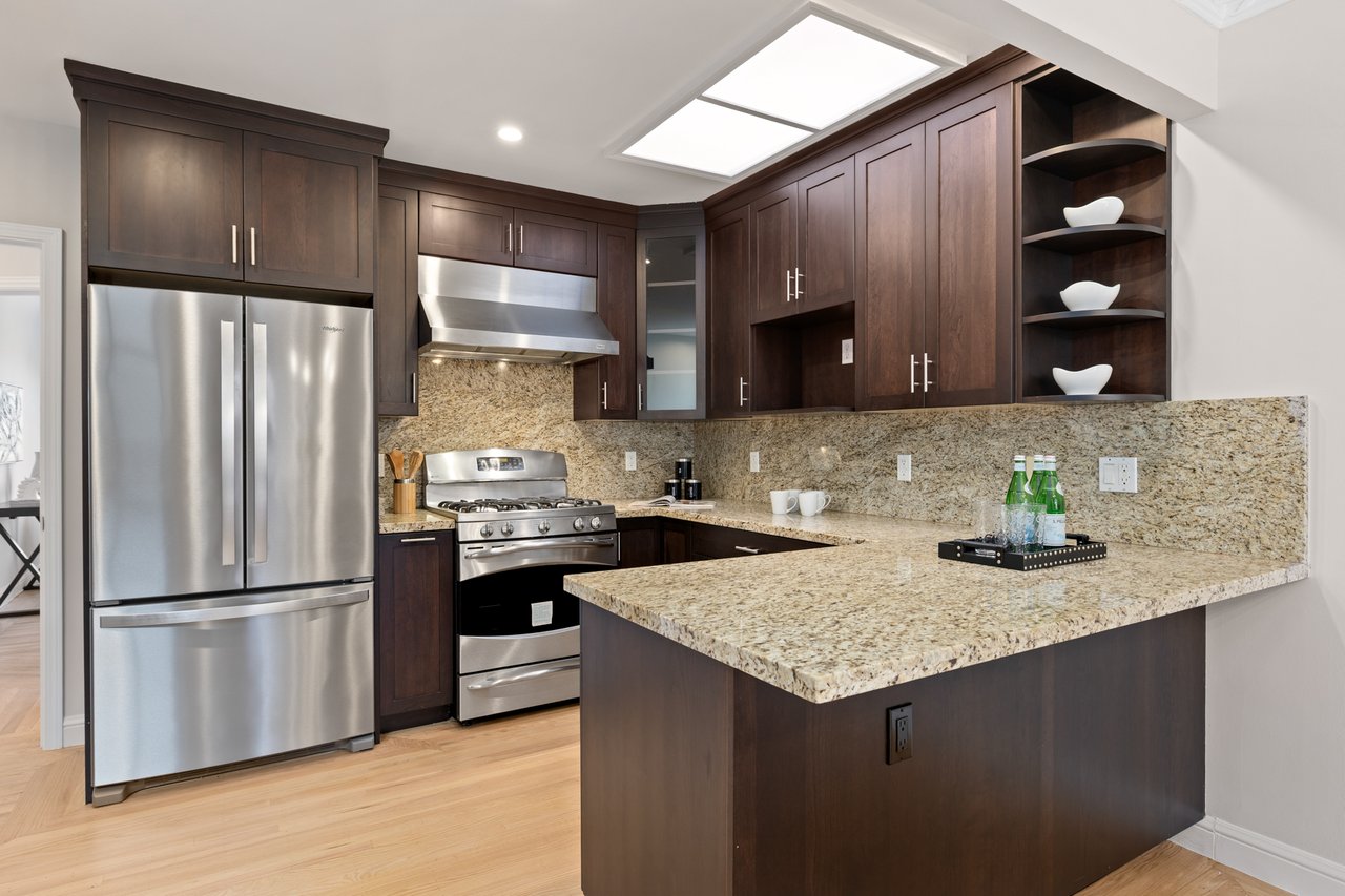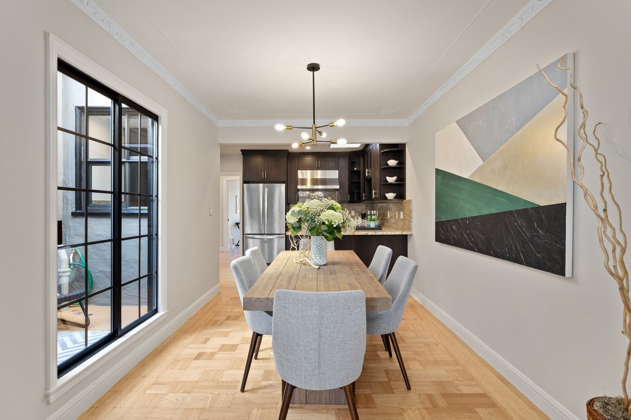 The main level features a spacious living room with a classic fireplace, a formal dining area, and a center patio that fills the interior with natural light. The updated kitchen with stainless steel appliances, updated cabinetry and one 3 piece bathroom complement the home’s original character while offering modern comfort. With four bedrooms and three bathrooms, the flexible floor plan is ideal for both everyday living and entertaining.